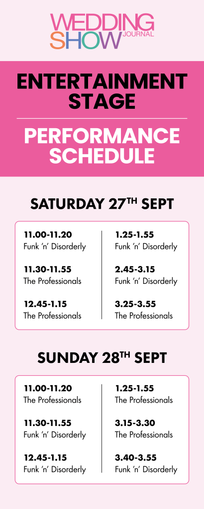 Enjoy the vibrant atmosphere at the Entertainment Stage of the Wedding Journal Show. This is a fantastic opportunity to experience these talented artists and get a taste of what they can bring to your special day.